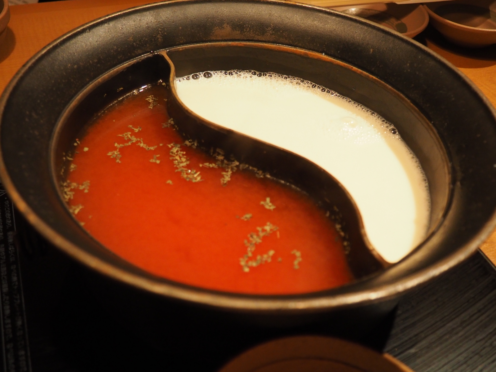 下單不久就來了湯底,豆乳鍋很濃似的。