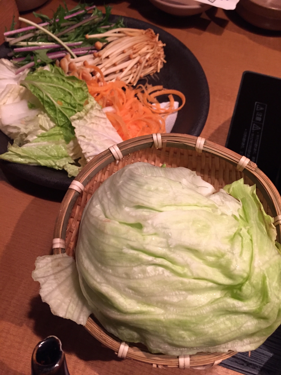 涮涮鍋温野菜大家應該有印象呢。它跟「牛角」是同一個集團,於2015打入香港市場,在香港也有2間分店。但在日本就有超過300間分店。在日本跟香港有點不同,就是主打放題,而香港都只可以選定食。所以第一日到大阪,在Outlet掃貨後回難波,已經接近9時的情況,我們最終決定到温野菜醫肚,因為選的分店營業至凌晨5時,食到再夜也沒有問題。