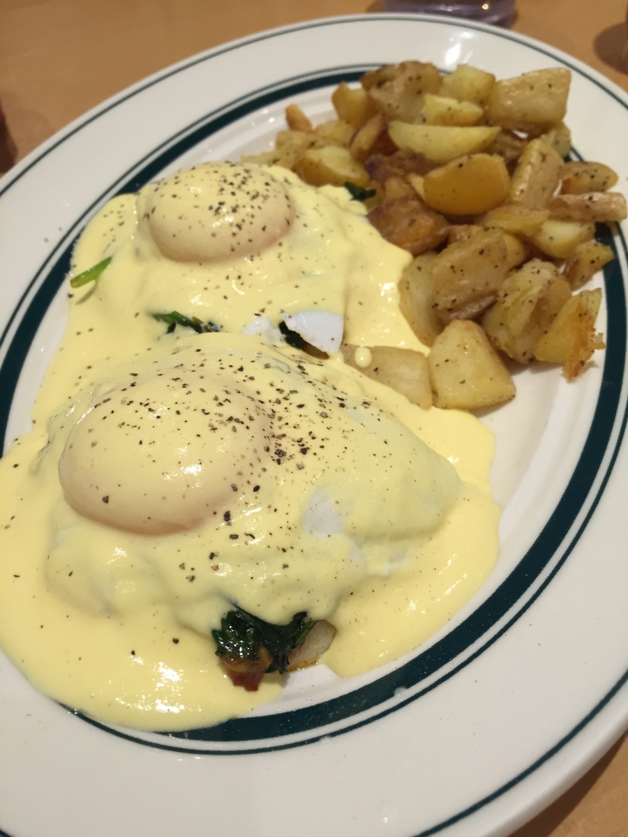 再來是Eggs Benedicts,分別點了菠菜,蕃茄,蘑菇及煙三文魚牛油果。Poached eggs沒有失望是流心的,而Hollandaise sauce也做得好,整體感覺好好。