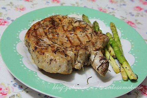 早前去左Rachel攪嘅sunday market, 買左一直都好想試o既豬鞍 (Pork Rack) 終於有時間整啦, 最好嘅烹調方法莫過於grill佢. 份量我真係好隨意, 全憑個人直覺而行 我用左海鹽, 黑胡椒, 黑醋, rosemary, thyme, olive oil, 仲有係匈牙利買返嚟嘅紅椒粉去醃左3個鐘. 預熱LC grill pan, 將豬鞍每面各grill 2mins, 加入蘆筍grill 一下, 入焗爐用200... 看全文 -