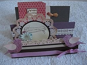 今日係舊同事雪心o既大日子, 之前我都應承左佢一定要整咭俾佢, 雖然呢排忙到癲左, 不過都抽左時間整, 因為有人欣賞自己做o既o野真係好開心! 今次張咭唔太花巧, 只係上一張stair step card o既變化版, 係中間cut開左, 一邊係stair step, 另一邊就似easel咭咁, 都唔錯呀, 好立體又可以企係度! 祝雪心永遠幸福快樂!... 看全文 -