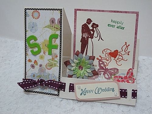 又係Wedding Card呀, 因為太多人結婚呢!!! 真係好開心, 係ESD吹水吹左一班Monalisa JMs返o黎...上星期六終於等到4妹同5妹結婚, 不過時間就唔到只係去左4妹度觀禮...當然要整返張賀卡過佢啦!! 今次呢張係Tri-fold Card, 簡單得來又幾得意! 祝4妹同老公仔百年好合, 永結同心!! ... 看全文 -