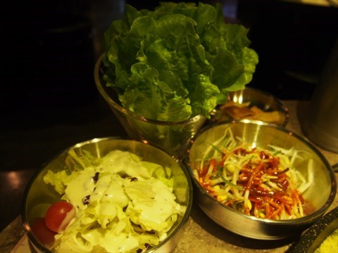 近年韓風甚廣,掀起了一股新勢力。韓國燒烤也乘機佔一席位。去年曾在某間韓國店吃過烤肉,今年也不例外吧,一於再接再厲吃個韓國烤肉吧。 達人烤肉位於銅鑼灣京都廣場,是不折不扣的韓國烤肉。其每張枱上也有個捸油煙機,可避免衣服沾上油煙。而且每個坐椅均可打開椅蓋,把私人物品放在椅內,既慳位又不礙眼。 配菜中有大豆芽,生菜及椰菜等,蔬菜為新鮮和爽脆,也可以把烤好的肉放在菜中,再把其他材料進一起吃,是別有一番風味。 ... 看全文 -