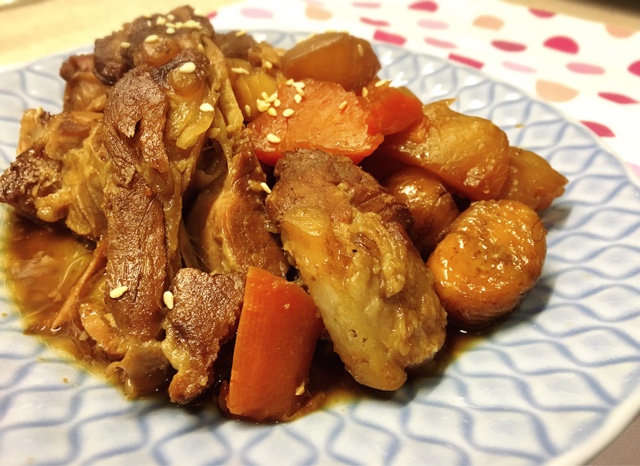 自從發現了樓下超市賣我豬腩骨原來就是豬軟骨,想要炆個肉就不再限於牛肋條及牛展了。西式韓式都經常做,這一次用上日式調味料。醬油與味醂這對完美的組合,好像永遠都不會出錯。以細火慢慢炆肉,出來肉質鬆化,濃濃甜甜每口都是醬油香。雖然大少不吃粟子,還是忍不住要下一大把到鍋中。光是吃配菜我已滿足得很了。 材料: 豬腩骨(豬軟骨) 4塊 甘荀 一條 白蘿蔔 一小條 粟子 1... 看全文 -