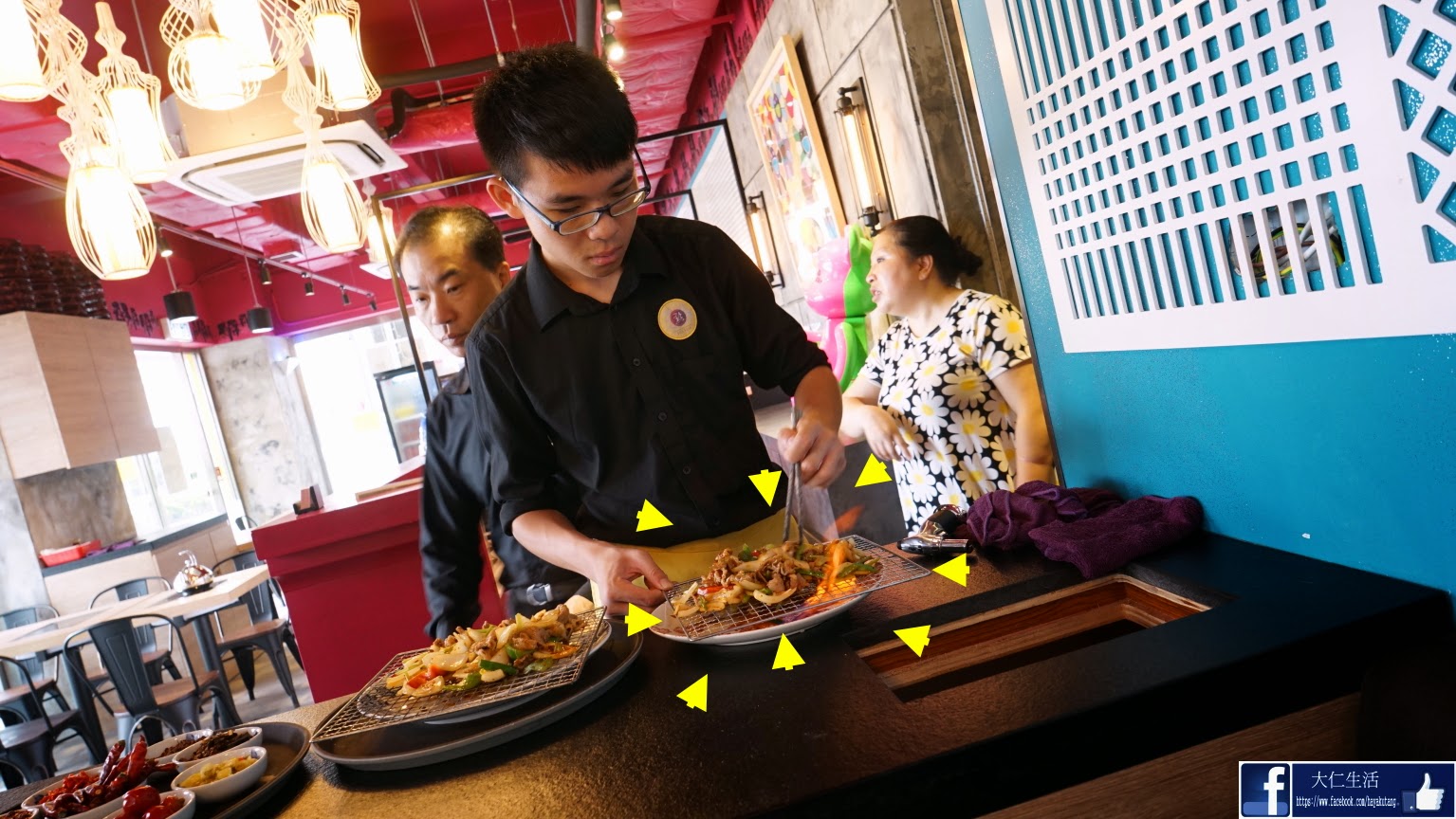 加上所有餡料盛在鐵網上, 十足似韓燒一樣, (不過今日D火唔夠大...如果火力可以勁一倍, 應該會更精彩)