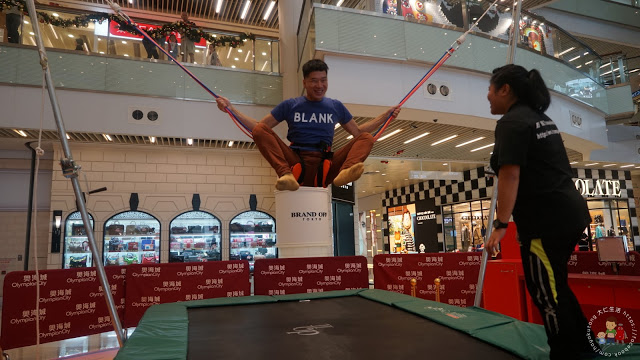 彈床上有教練可以幫你翻根斗, 教練:「你跳高D, 舉起雙腳, 我會幫你」(多謝教練~)