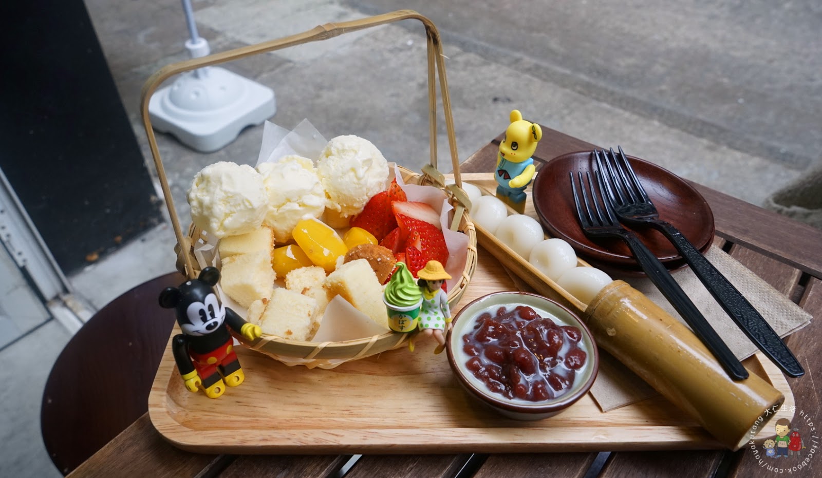 主角上枱, 非常豐富的內容...士多啤梨, 香蕉, 蜂蜜蛋糕, 小丸子, 栗子, 紅豆蓉, 雲呢拿雪糕