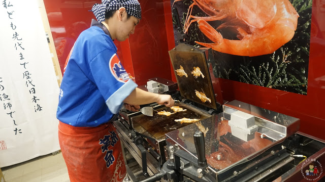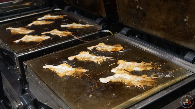 後來Yuki San即場將原隻蝦入粉, 之後即以160度高溫烘6分鐘...(嘩! 真係原條蝦壓成架?)