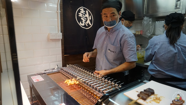 串燒橫町 有師傅正在燒雞肉串, 香味剛剛好傳到我面前...店員:「我哋真係由岩手縣直送D雞嚟香港, 所以味道會唔同香港你食到嘅雞」