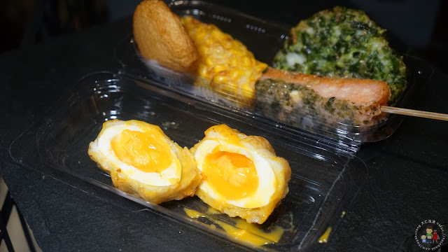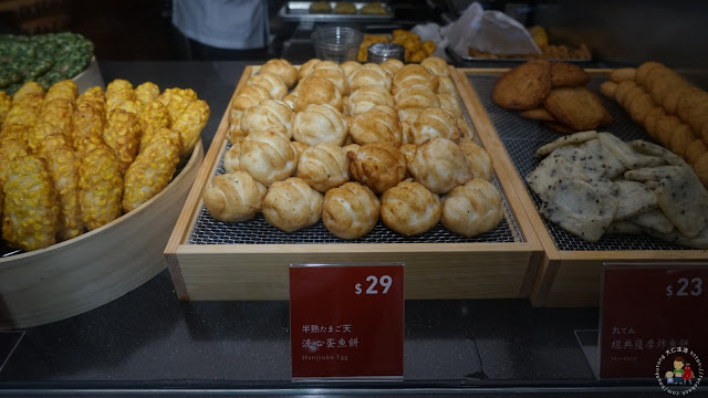 最多人買就是流心蛋魚餅 $29, 朋友Edward:「真係好流心, 簡直黐實咗個口」, 店員推介我食香蔥檸檬魚餅 $23.