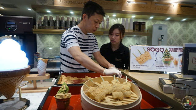之後經過 I creameria, 她竟然大大隻字寫著 日式蕨餅串 $38...