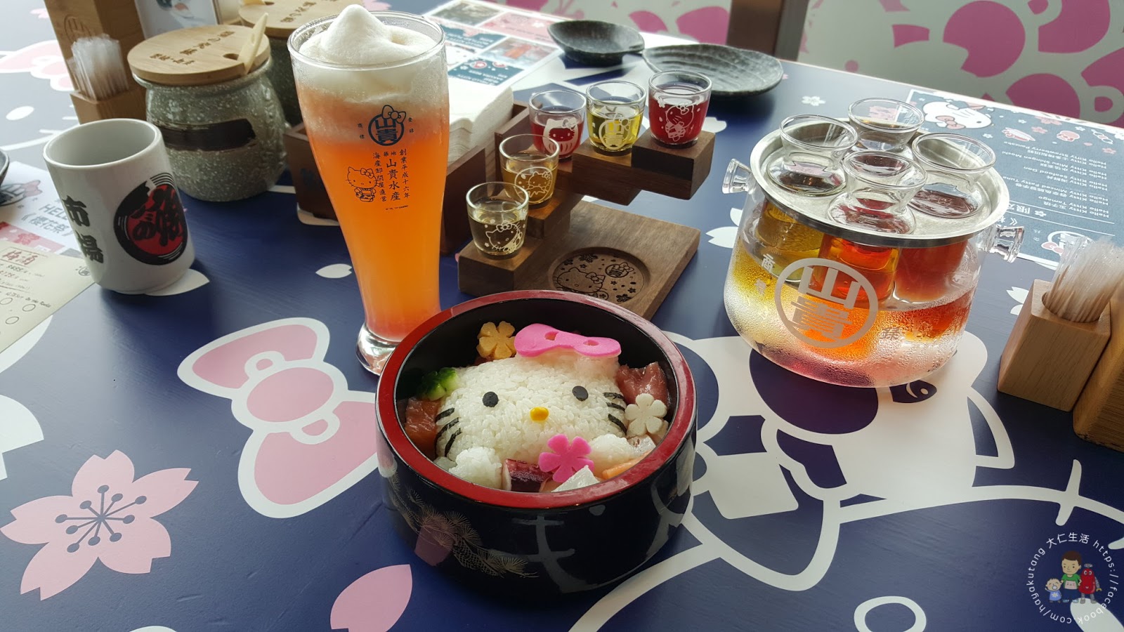 灣仔築地.山貴水產有新攪作, 以Hello Kittyx櫻花做主題, 大門口, 玻璃窗, 枱, 紙巾都是Kitty外, 5款食物+10款梅酒全部都是哈囉吉蒂.