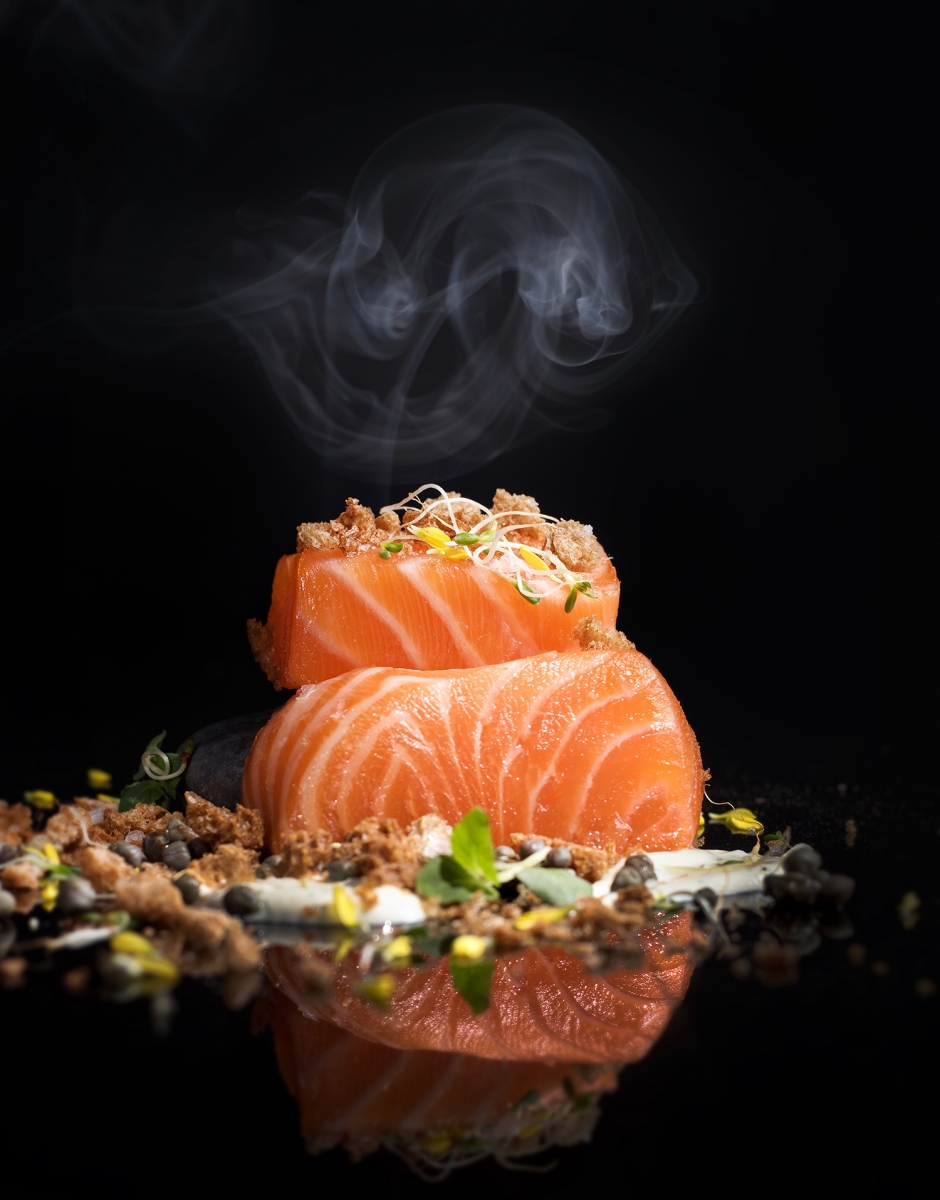 可持續發展海鮮推介就有煙三文魚配刁草酸忌廉,上菜時有煙燻蘋果木嘅一絲絲輕煙飄出,夠哂視覺同嗅覺效果。