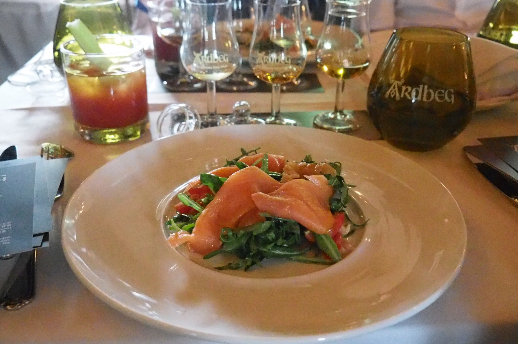 另外有趣的是Ardbeg CORRYVRECKAN 配 煙三文魚火箭菜沙拉