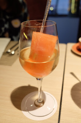 是Sparkling Wine 與冰條的組合,似乎較適合男士,畢竟酒精度會較高,但在炎夏中來一杯,又幾清涼透心。