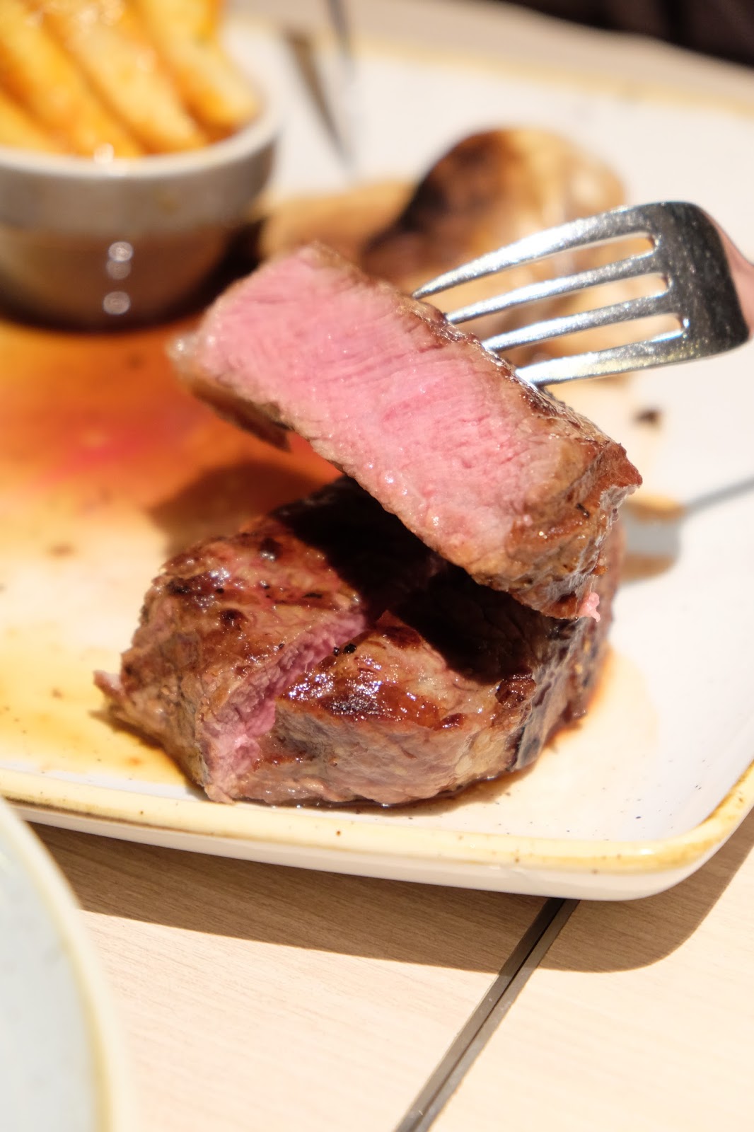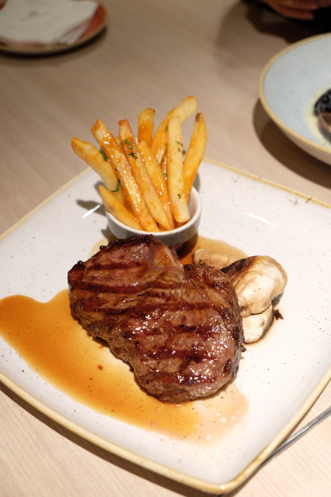 Char-grilled Australian beef striploin with grilled portobello and special fries