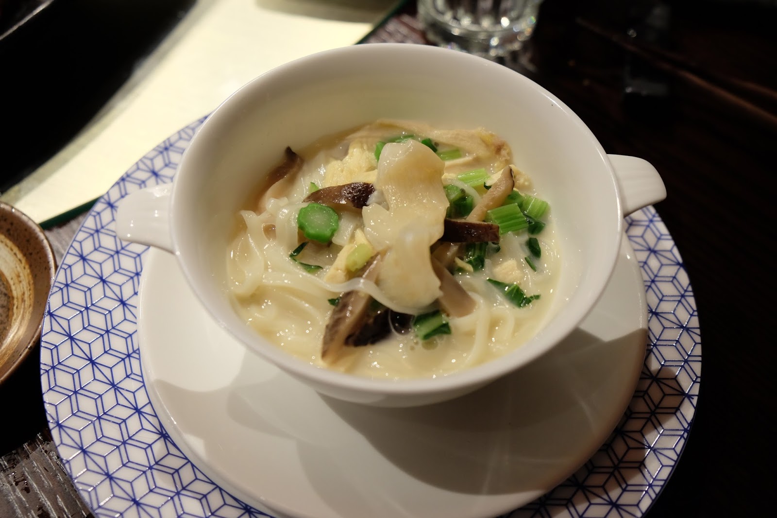 魚湯花膠嫩雞稻庭烏冬 HK$160 只可以用鮮甜滑溜來形容,魚湯充滿了膠質,而烏冬正好蘸滿了湯汁,惹味到不得了,其實肯認真花功夫,而不偷工減料,紮紮實實的味道,客人是吃得出的。