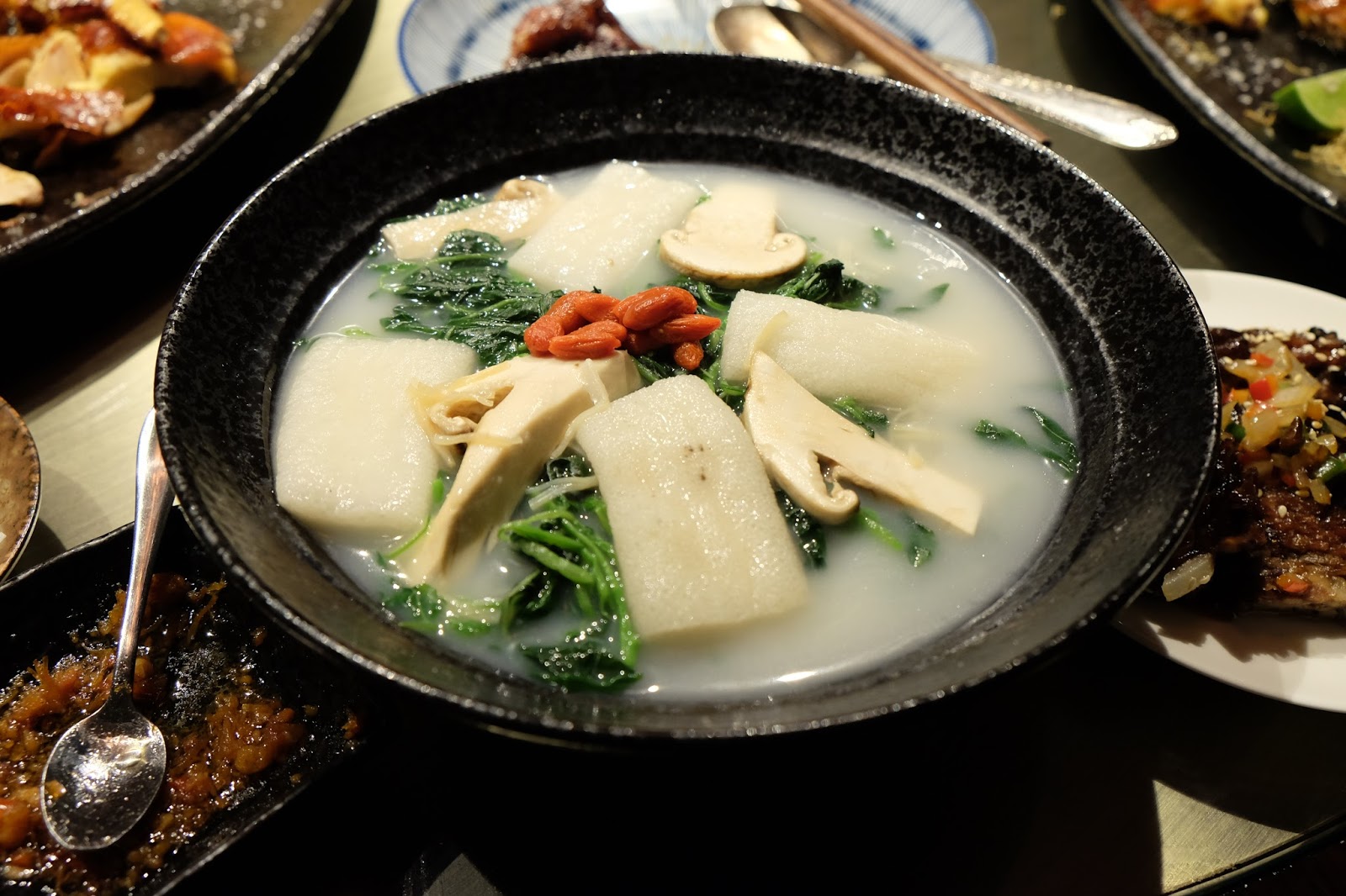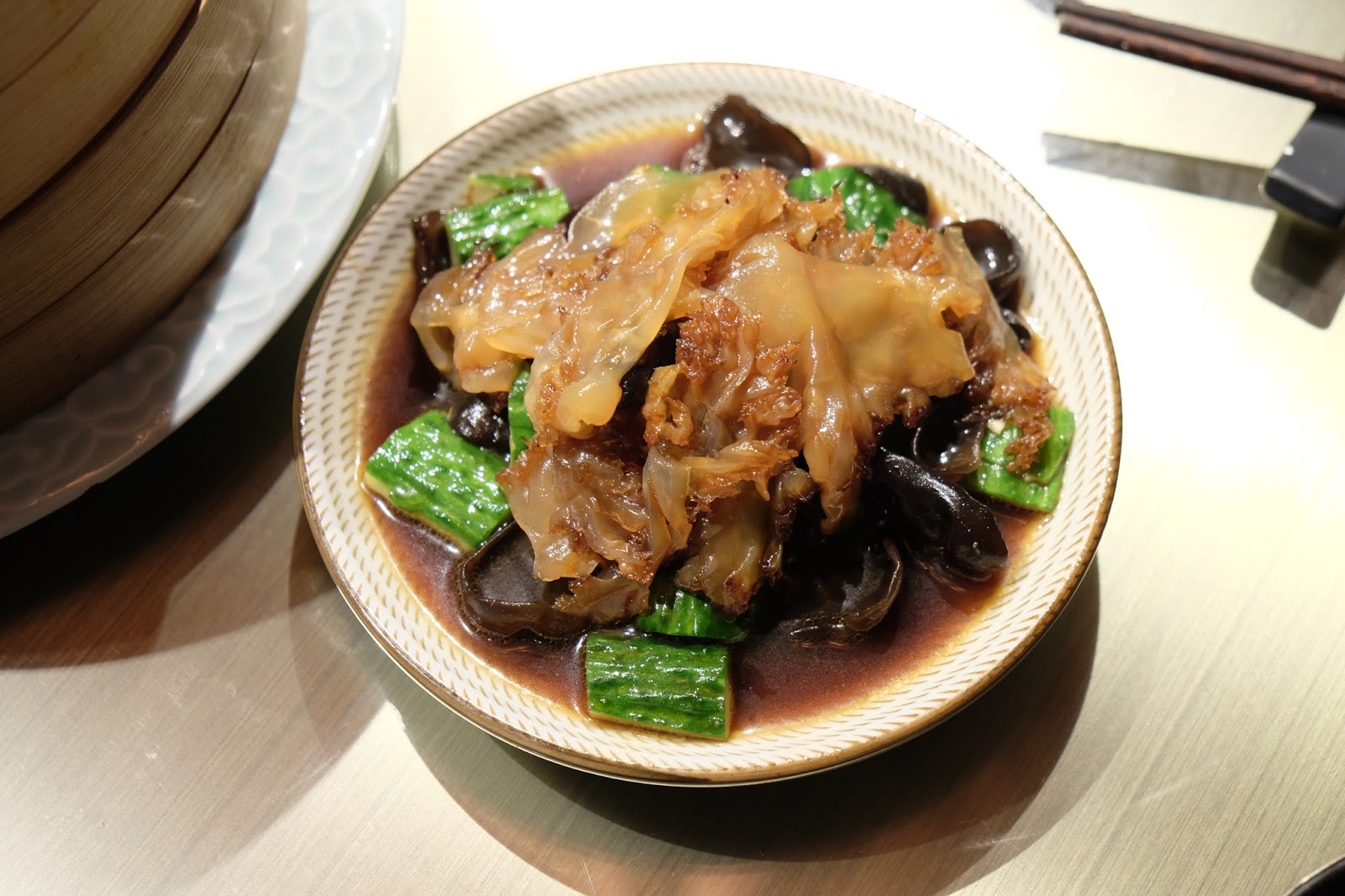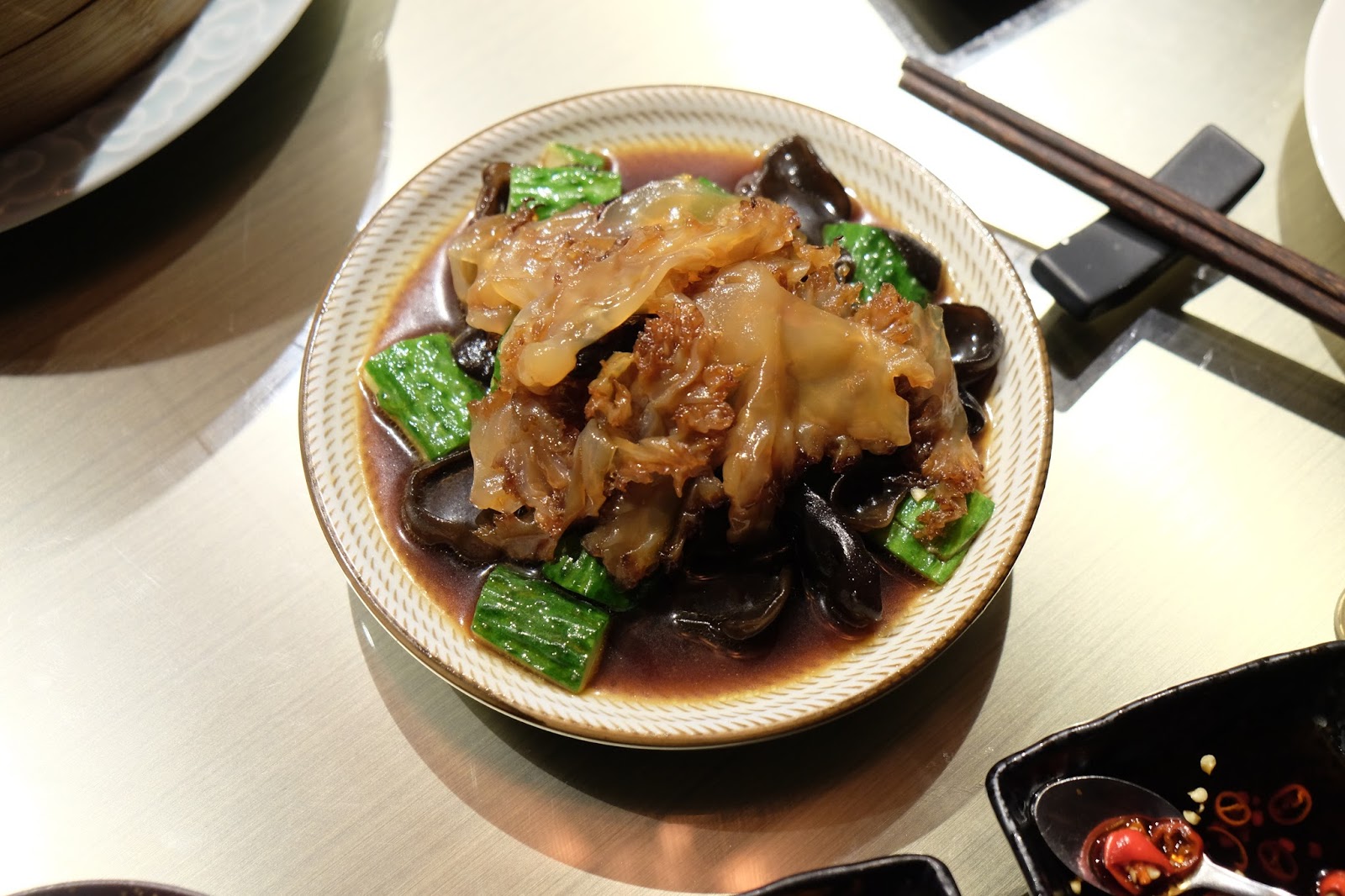 松茸竹笙米湯浸莧菜 HK$220 既有松茸的幽香,又有蘸滿米湯後,依然爽口的竹笙,當造的莧浸至軟稔,用來清清味蕾的感覺啱啱好。