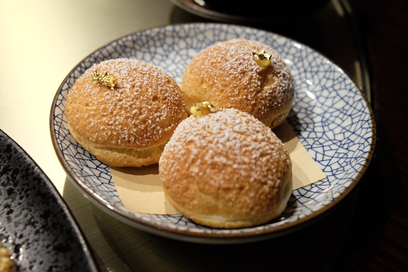 外形說是中式餐包也可以,灑上了糖霜及點上金箔,望見變得貴氣,餡料略嫌薑味太強勁,將芒果的香甜蓋過,但都是一道值得一試的甜品。