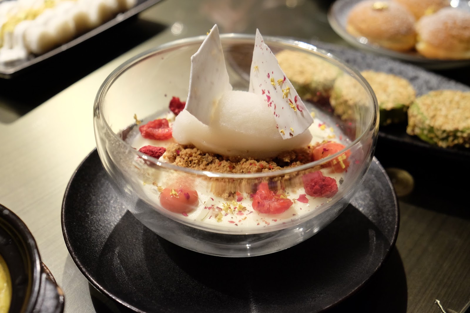 玫瑰荔枝奶凍 HK$115 在好幾款甜品中,是個人最喜歡的,不單在色調上的配搭夠清雅,奶凍在口裡散發荔枝的芳香馥郁,輕盈幼滑,加上raspberry的微酸相伴,實在好食又好睇,三扒兩撥便見碗底。