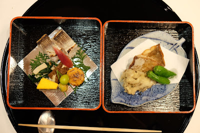 主角是竹籤魚箱押壽司,屬於時令的食材,但吃起來有點乾,反而伴碟的配菜更精彩。