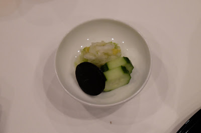 「三菜」是除了主食外的配菜,小巧的器皿,放上了昆布、白菜及青瓜,感覺清新。