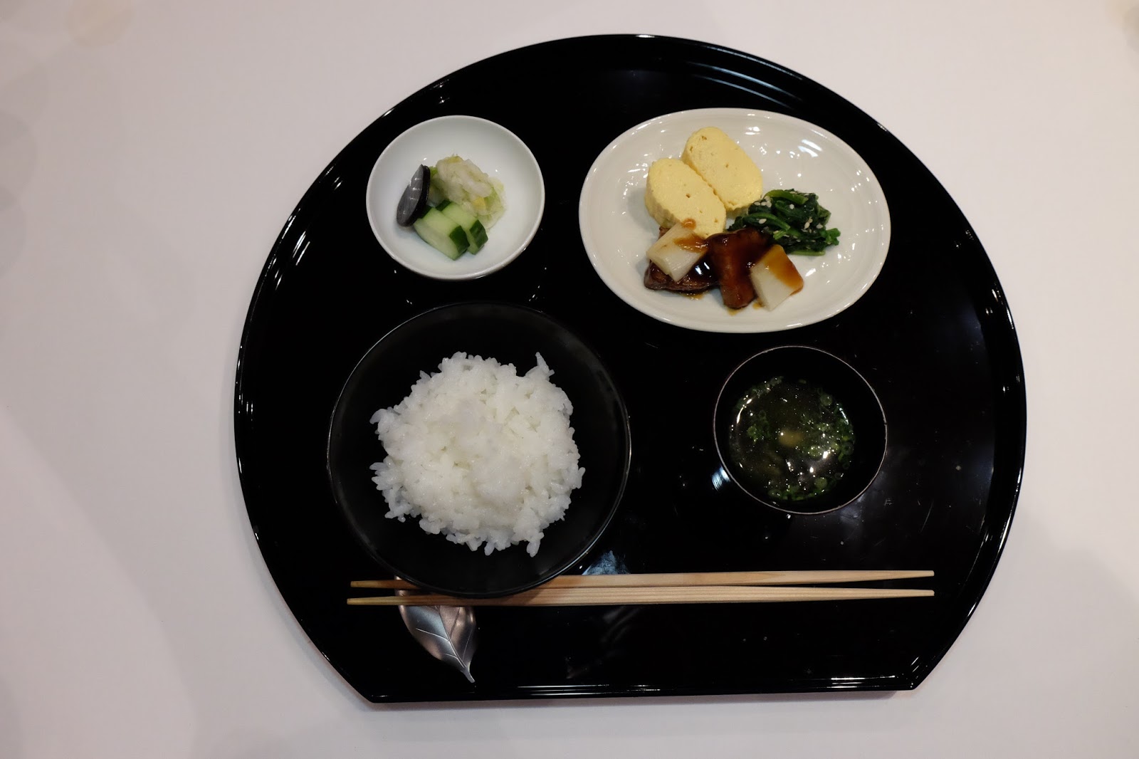 主食是關西風的蒸蛋卷、芝麻菠菜、兩片白蔥與及用甜豉油煮過的鴨胸,而米飯是選用了來自富山縣的白米,煙韌而有嚼口,滿有飯香,小小的一碗真的不夠。