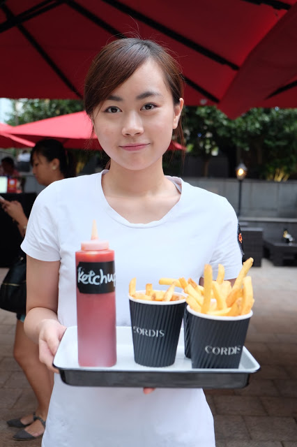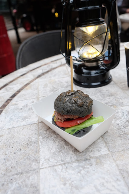 賣相黝黑,頂層裂縫分佈平均,塗上蛋漿及火喉都恰到好處,完全是一個漆黑的菠蘿包,原來是以竹炭混合麵粉搓成,加上生菜、蕃茄、墨西哥辣椒和新西蘭牛扒,份量十足,本身套餐是配上薯條,即炸得外脆內軟,夠惹味。