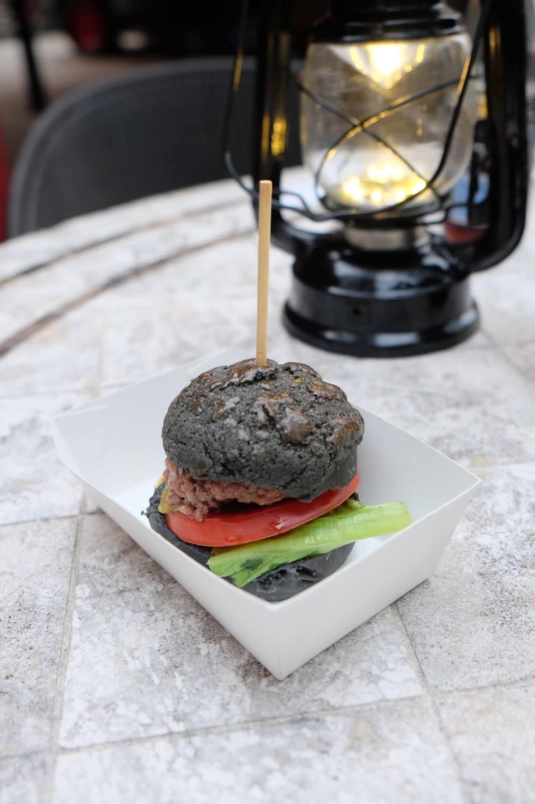 賣相黝黑,頂層裂縫分佈平均,塗上蛋漿及火喉都恰到好處,完全是一個漆黑的菠蘿包,原來是以竹炭混合麵粉搓成,加上生菜、蕃茄、墨西哥辣椒和新西蘭牛扒,份量十足,本身套餐是配上薯條,即炸得外脆內軟,夠惹味。
