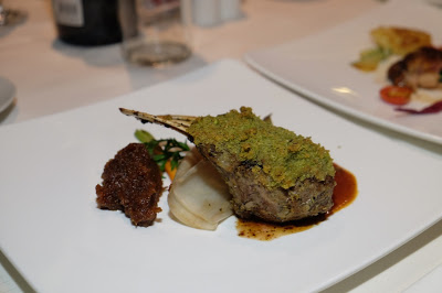 開心果仁脆燒羊架配無花果醬及橙味烤蔬菜