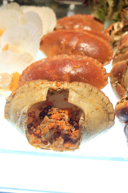 不單有少見既花蟹,更加有法國麵包蟹,前者肉質鮮甜,而後者一揭開蟹蓋,便會見到豔紅色的蟹膏,真的夠邪惡,入口甘香,實在是難以抗拒的誘惑。