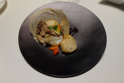 在各種班類中,個人最喜歡的一定是星班,肉質細緻而魚味濃郁,今次配上法國藍菌及新鮮帶子,將傳統的中式處理手法,滲入西方的食材,兩者配合,尤其是幾種食材互相把對方的精華吸收,卻不會產生衝突的味道,相信大廚是經過多次試菜下的成果。
