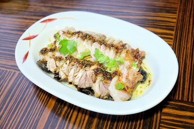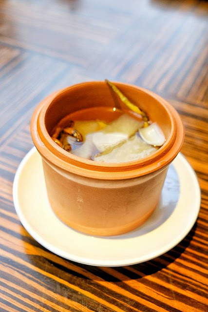 事前要用海鹽水泡浸一天,所以每天只能限量供應,即烤即上檯,可以有兩種食法,先把表層帶焦香的薄片,加入京惹絲及青瓜,塗點海鮮醬,再用糢糢皮包起,一啖咬落,不單有羊肉的羶香,又有京惹的清新,風味獨特,大廚更會先將第一層薄切完,再把羊腿重新烤一次,目的是每羊肉每層都有肉香及保溫,細心度十足。
