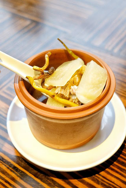 羊肉煲湯,也許會令人覺得太羶,但今次配合了石斛、黨參及北芪清燉4小時以上,湯色依然清澈見底,加入了蘿蔔片,用來吸走多餘的油份,更是神來之筆,每口都充滿了肉味與及藥材的幽香,用時間換來的味道,真是偷懶半分也不成。