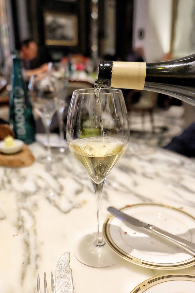 酒體晶瑩剔透,氣泡幼細,散發陣陣果香,配上輕柔的泡沫及蘑菇幽香,毫無衝突的感覺。