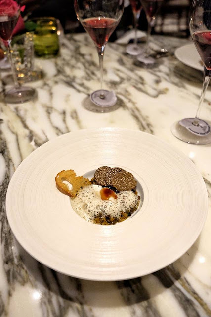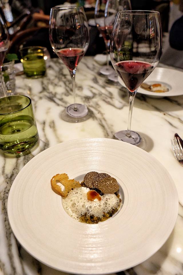 想不到連鵪鶉蛋都處理成流心,弄穿了蛋黃,好讓蛋漿混和了扁豆及燉肉,帶來了豐盈的口感,連同幾片黑松露一齊食,令到香味更濃。