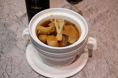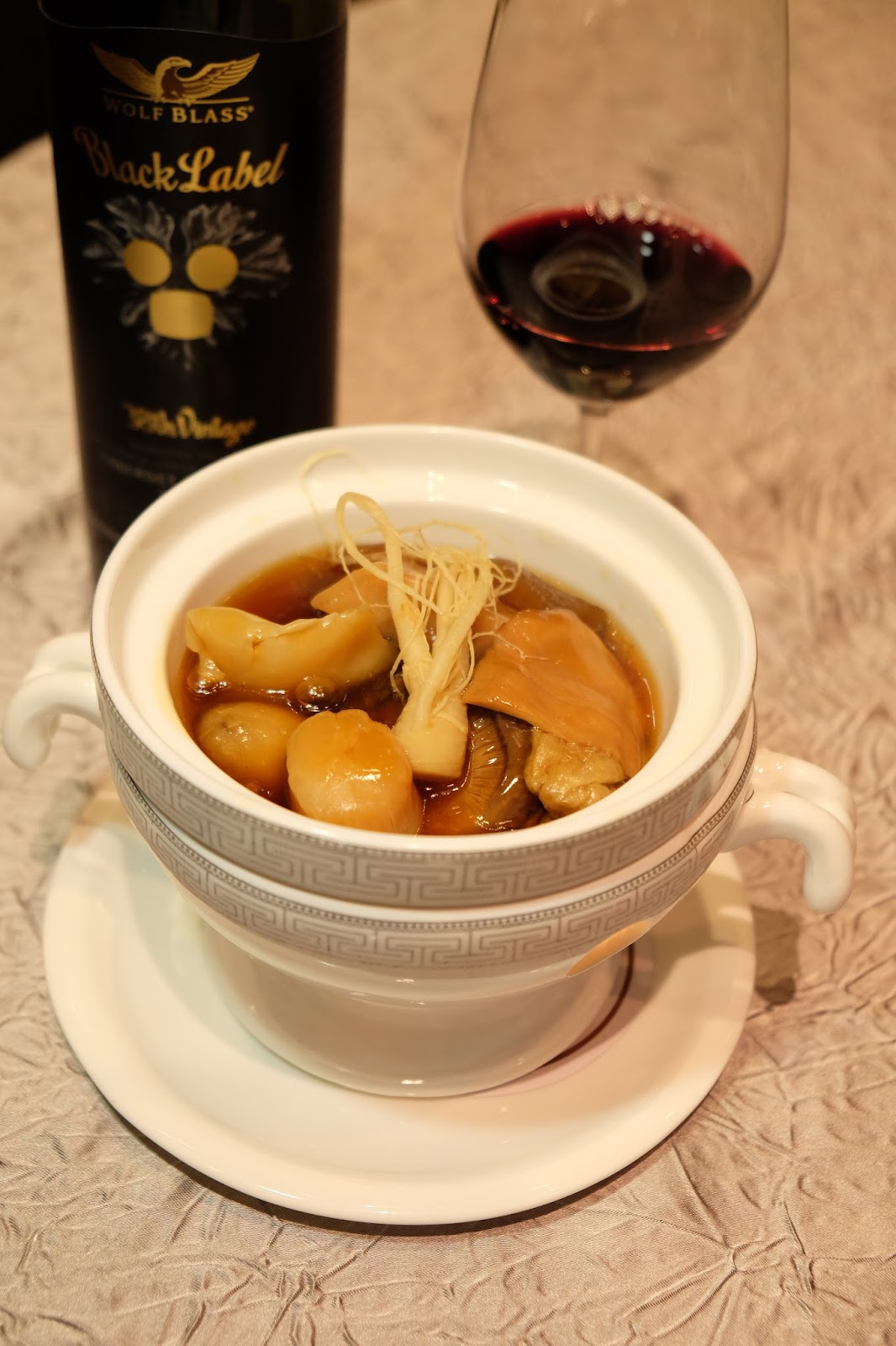 Braised Abalone, Sea Cucumber, Fish Maw, Dried Conpoy in Casserole