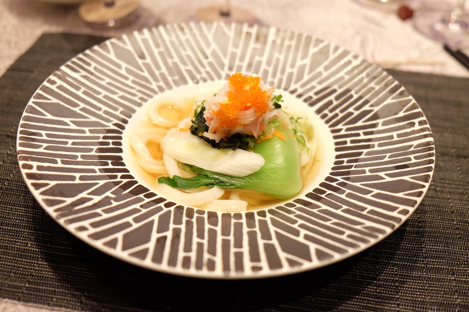 Snow Crab Meat U-don with Assorted Vegetables in Soy Soup