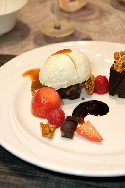 特濃合桃朱古力蛋糕配香草雪糕伴焦糖醬