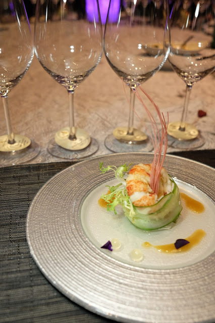 賣相簡單亮麗,龍蝦起肉,加入沙律菜,再以青瓜片包裹,伴碟小珠原來是柚子汁,令口感更清新。