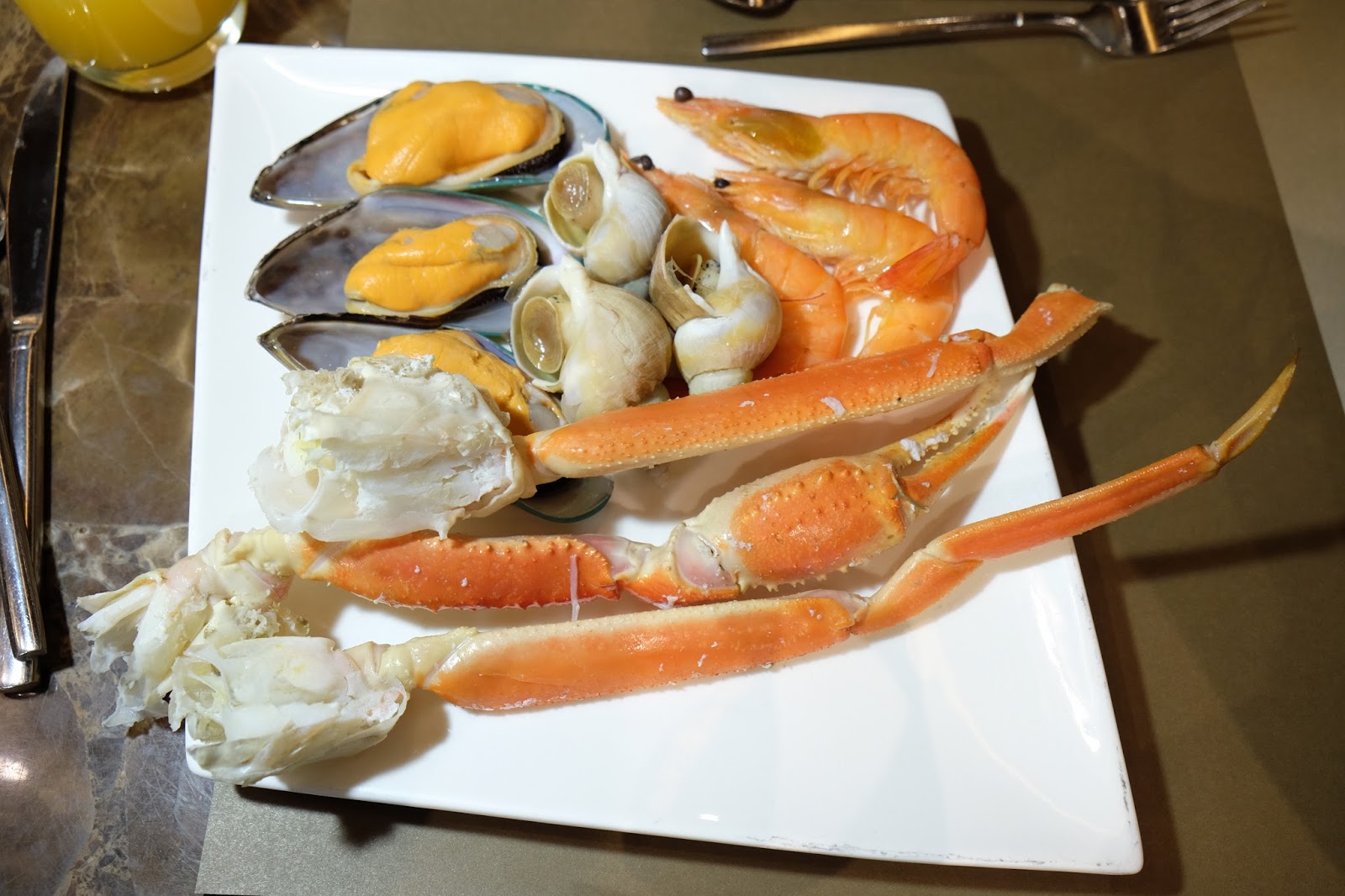 有長腳蟹爪、翡翠螺、凍蝦及青口,種類不算特別多,但蟹腳真的很鮮甜,加上柔韌的翡翠螺,都值得試試。