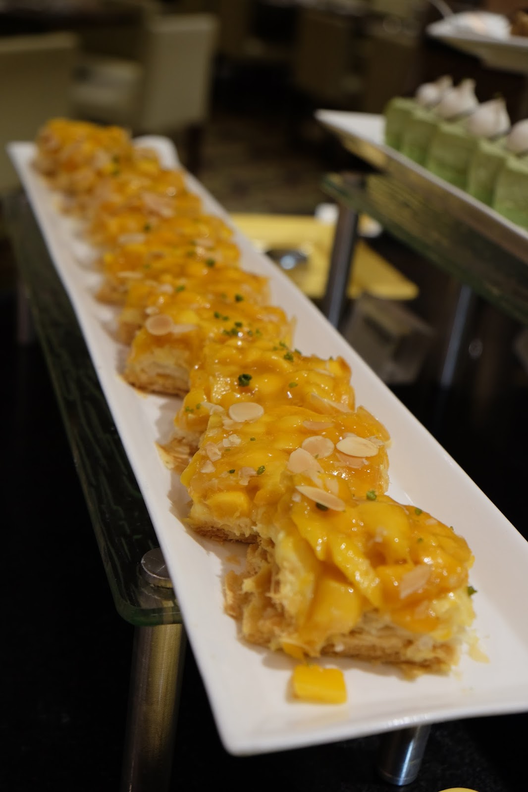 至於其他甜品亦是陣容強大,蛋白梳乎厘、天津紅豆糕、焗法式車厘子撻、朱古力香蕉卷、法式果味焦糖燉蛋、果汁啫喱、冧酒批、班蘭雪坊蛋糕、開心果、慕絲蛋糕、朱古力慕絲、藍莓慕絲餅、豆奶芝士餅、牛油麵包布甸配雲呢拿汁葡撻及芝士撻。