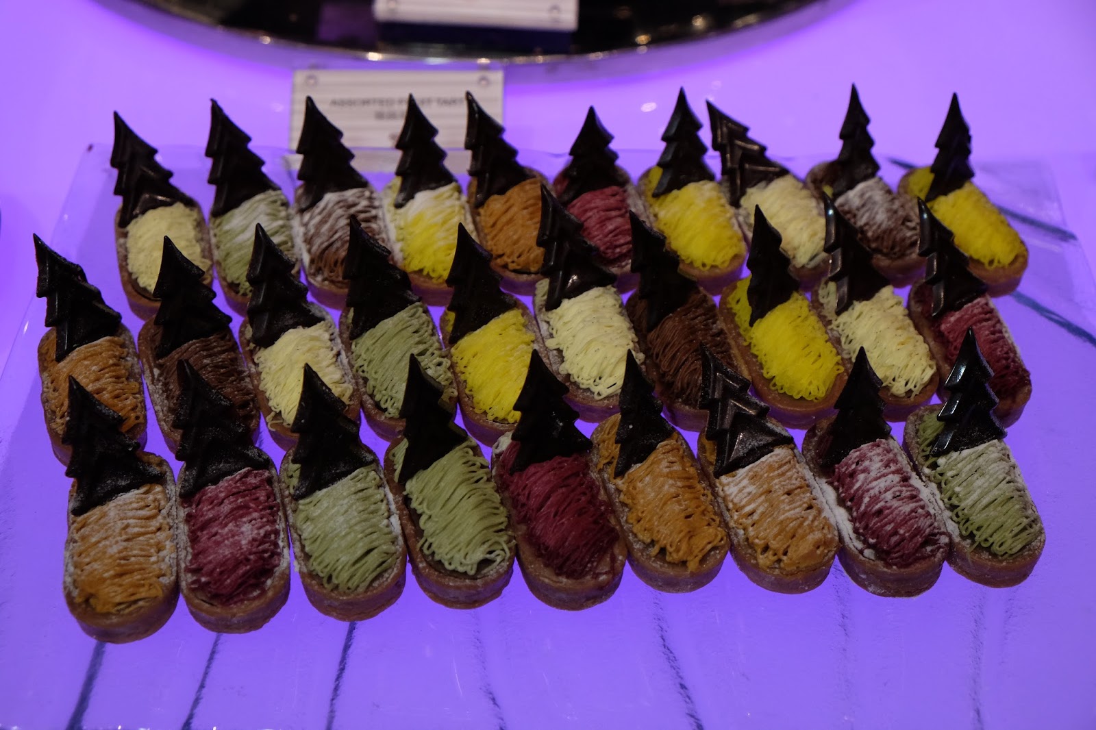 綠茶慕絲糯米糍、綠茶芭芙、香檳啫喱、聖誕節朱古力樹頭蛋糕、Tiramisu、抹茶千屠餅、士多啤梨撻、雜錦果撻、Macaroon、木槺布甸、柚子牛奶朱古力布甸、柚子無花果芝士蛋糕、藍莓芝士蛋糕、朱古力蛋白、聖誕節拔蘭地蛋白撻、聖誕節意大利朱古力餅、聖誕節百果餡餅、核桃批、曲奇、葡撻、聖誕節麵包布甸,要大家一口氣讀一次,恐怕都有點難度。
