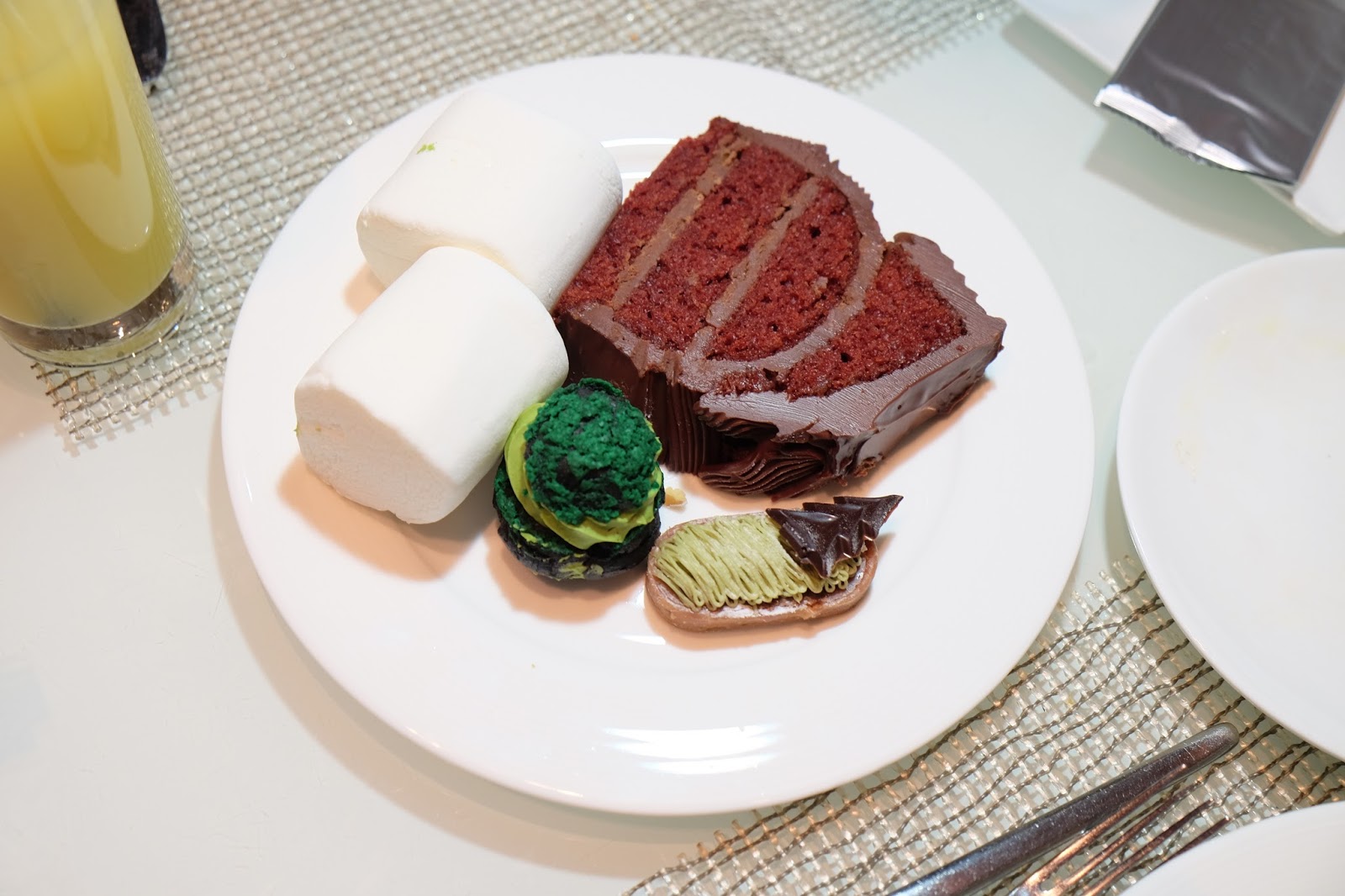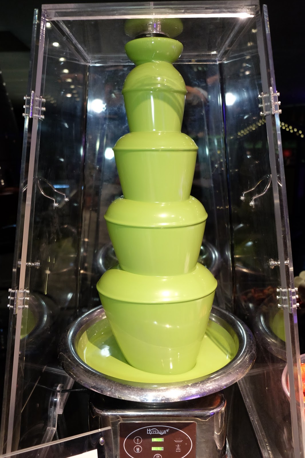 在入口處的甜品區,先在日本抹茶40%白朱古力噴泉,用小朋友拳頭大的棉花糖蘸點一下,真是很豐腴的口感。