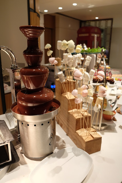 甜品區更有提子麵包有布甸、北海道芝士蛋糕、白朱古力士多啤梨乳酩蛋糕、拖肥朱古力餅、法式長泡芙、熱情果乳酩蛋糕及朱古力噴泉,就算是愛甜一族,恐怕都難以全部試均。