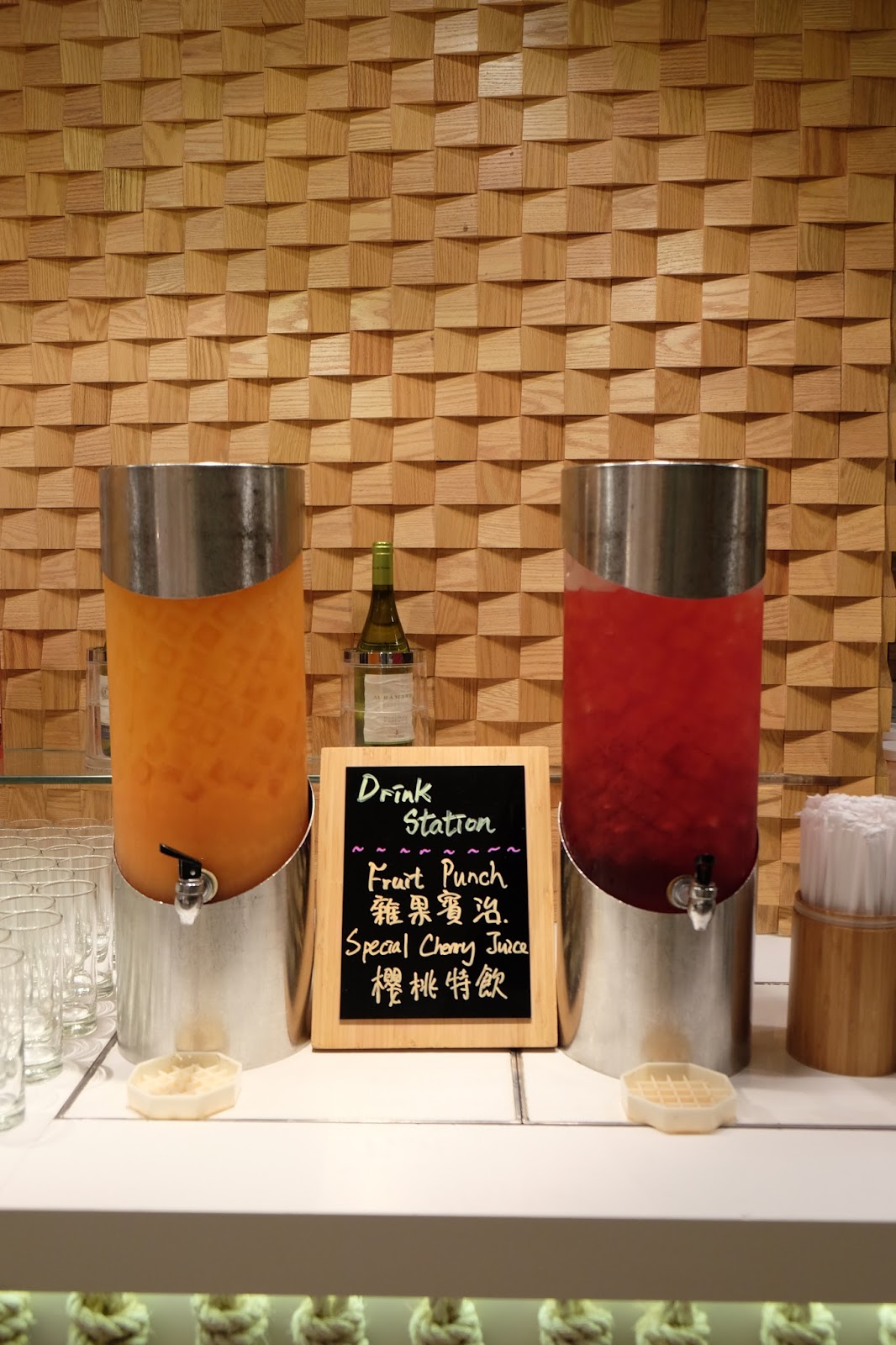係海鮮檯有雜果賓治及櫻桃特飲可以任添,平時飲一杯幾三幾十蚊啦,但首輪似乎有點甜,最好等一陣,讓冰塊溶化少少會更好。