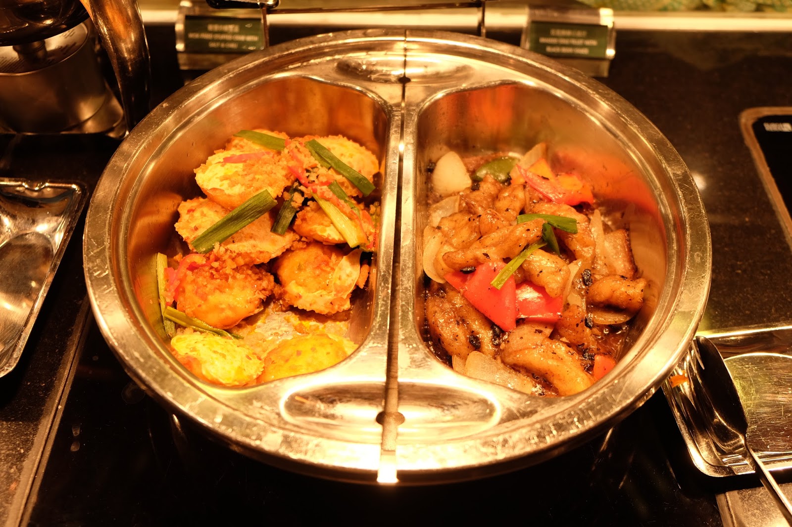 熱葷另外仲有炆龍脷柳豆豉汁、芥末沙拉骨、印式烤雞、印果阿邦羊肉咖喱及印度雜菜咖喱,總有一款啱心意。