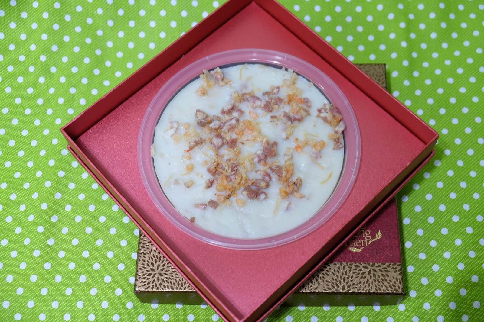 其實酒店中菜廳「龍苑」今年推出了「花旗蔘紅棗糕」、「鯉魚薑汁年糕」及「瑤柱臘味蘿蔔糕」 ,上年食過蘿蔔糕,囝囝大讚,今年再下一城,想不到兩日已經給完全消滅了,講真,食落有絲絲蘿蔔,而且清甜,臘肉比例啱啱好,不會太多搶味,一於下年再食過。