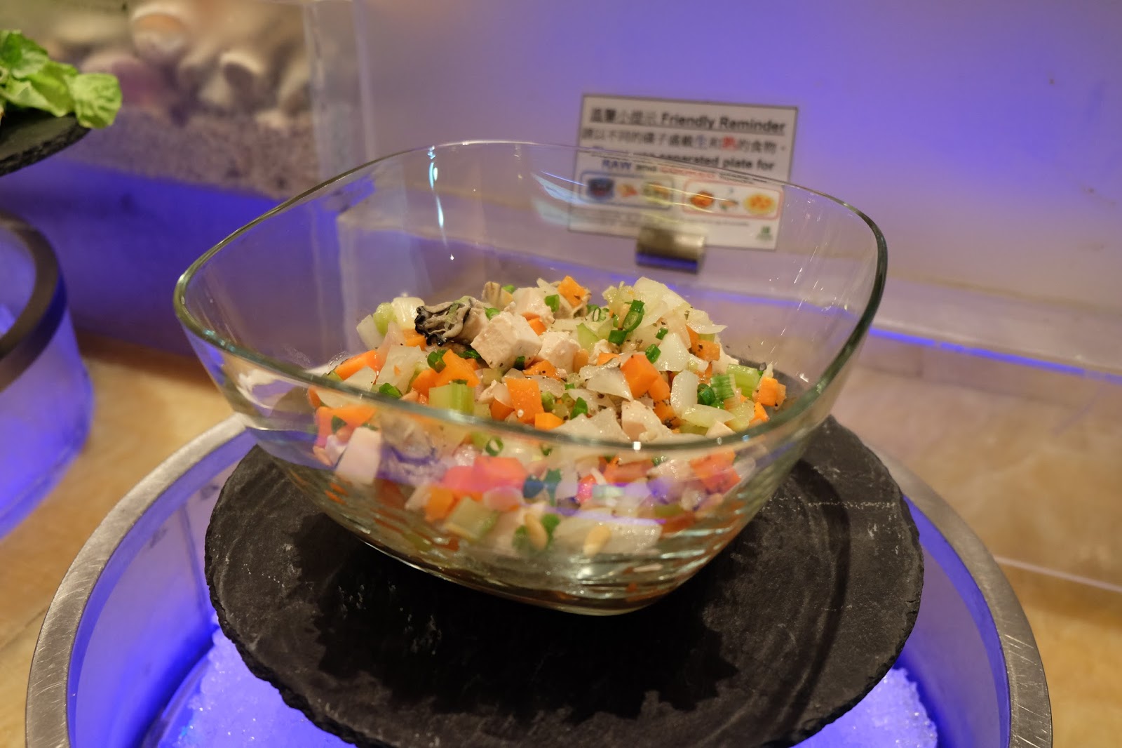 至於海鮮有長腳蟹爪、翡翠螺、小紅龍蝦、藍貝及熟蝦,陣容未算強勁,但質素好,翡翠螺夠大隻、小紅龍蝦肉質咸鮮,而長腳蟹爪鮮甜,解凍處理得相當好。