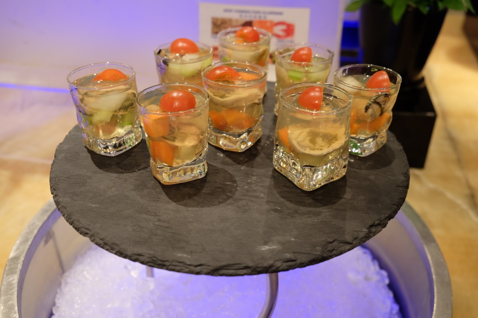 蠔肉蕃茄啫喱杯、蠔肉雞肉沙律、蠔肉忌廉芝士甜椒卷及煙蠔雜菌沙律。